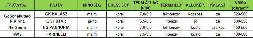 Hód-Mezőgazda Zrt által forgalmazott kalászos vetőmagok 2017