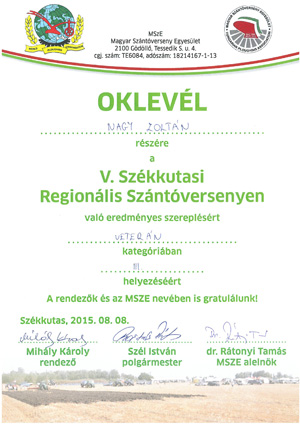 Nagy Zoltán munkatársunk pedig veterán traktoros szántás kategóriában saját eszközével harmadik helyezést ért el.