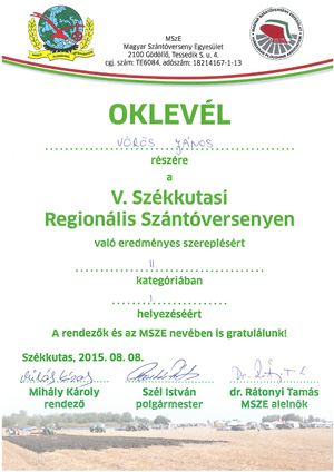 Az augusztus 8-án Székkutason rendezett Regionális Szántóversenyen két kollégánk is szép eredményt ért el: