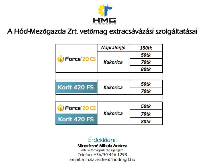 A Hód-Mezőgazda Zrt. vetőmag extracsávázási szolgáltatásai