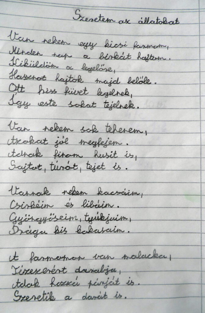 Vers 2. helyezett: Belák Jázmin, Gerendási Általános Iskola 3. osztály