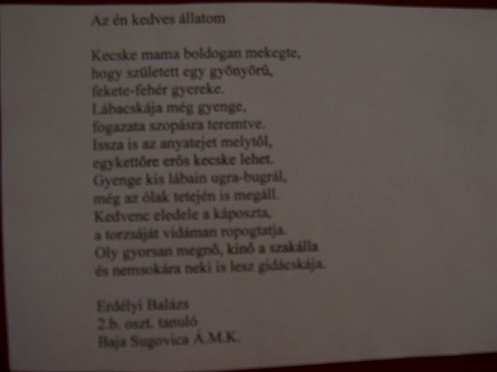 Különdíj: Majoros Szofi (Sándorfalva Pallavicini Sándor Általános Iskola)