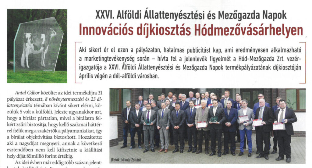 Aki sikert ér el ezen a pályázaton, hatalmas publicitást kap, ami eredményesen alkalmazható a marketingtevékenység során – hívta fel a jelenlevők figyelmét a Hód-Mezőgazda Zrt vezérigazgatója, a XXVI Alföldi Állattenyésztési és Mezőgazda Napok termékpályázatának díjkiosztóján április végén a dél-alföldi városban.