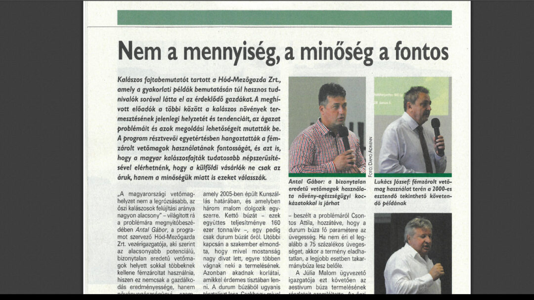 Kezdőlap Sajtószoba Edukáció a talajszelvénytől a burgonyaföldig- Mezőhír 2025. július 2025.07.21. | A megújult… Mindent megváltoztatott a járvány…. 2025.06.18. |… Axiál Híradó 2025/ 2. szerző: Petrity Rebeka 10-11. old. 2025.05.16. | Innovatív… „Jobb megelőzni, mint gyógykezelni” – Beszámoló a Magyar Buiatrikus Társaság XXXII. Nemzetközi Tudom 2025.04.14. „Jobb… Délmagyarország 2025. 04.08. 2025.04.11. | Naprakész… Magyar Állattenyésztők Lapja – 2025. márc. 2025.03.19. Magyar… Hatvan év után ismét pusztít a vírus 2025.03.14. | Hatvan… Együttműködési megállapodást írt alá a NAK és a Juh és Kecske Ágazati Szakmaközi Szervezet 2025.03.14. | Együttműködési… Modernizálódó állattenyésztésről – az MMG Kávézó rovatában Antal Gábor 2025.03.05. | Modernizálódó… Magyar Mezőgazdaság – 2025. január 15. 3. hét Magyar Juhászat melléklet 2025/január 2025.01.20. | A tavalyi… Magyar Mezőgazdaság – Magyar Juhászat és Kecsketenyésztés melléklet 2024. nov. 20. 47. hét 2024.11.21. | Antal… Magyar Állattenyésztők Lapja – MÁL 2024. november 2024.11.15. | Közel… Magyar Mezőgazdaság – 35. szám 2024.08.28. 2024.08.28. | Az államalapítás… A vízhiány hatása a mezőgazdaságra 2024.08.12. | A vízhiány… Mauritiusról és a Seychelle-szigetekről is érkeztek diákok a Hód-Mezőgazda Zrt.-hez 2024.07.22. | Leendő… Magyar Mezőgazdaság hetilap 24. hét 2024.06.12. – szerző: Bárdos B. Edit 12-13. old. 2024.06.13. | Ellenszélben… Magyar Mezőgazdaság – 2024. 04. 17. A hangsúly a határozott névelőn van 2024.04.17. | Április… Magyar Nemzet – 2024. 04. 16. Seregszemlét tart az agrárium 2024.04.17. | Idén… Promenad24– 2024. 04. 16. Vásárhelyi és makói céget is díjazott a Hód-Mezőgazda Zrt. 2024.04.17. | Összesen… Axial – 2024. 04. 16. AXIÁL-SIKEREK HÓDMEZŐVÁSÁRHELYEN 2024.04.17. | AXIÁL-SIKEREK… Délmagyar – 2024. 04. 16. 220 kiállítóra számítanak az állattenyésztési napokon Vásárhelyen 2024.04.17. | Egy… TéMaBaranya – 2024. 04. 16. Baranyai tejüzem nyerte az állattenyésztésért terméknagydíjat 2024.04.17. | Baranyai… Promenad24 – 2024. 04. 16. Ők a Hódmezőgazda Termékdíj pályázatának díjazottjai idén 2024.04.17. | Ők… Középpontban a termőtalaj – Agrártrendek 2024. konferencia 2024.03.06. | A talaj… Magyar Mezőgazdaság hetilap 2023.12.13. – Horváth Csilla írása 2023.12.15. | Hódmezővásárhelyi… Hőstressz elleni praktikák – Így védjük tejelő marháinkat a kánikulától 2023.08.31. | Hőstressz… Kilenc állatorvos-hallgató tölti nyári szakmai gyakorlatát a Hód-Mezőgazda Zrt-nél 2023.07.26. | Jelenleg… Toldi Péter 217 kilométert futott a Himalájában 2023.07.10. | Toldi… MMG 2022. október 12. – Élelmiszergazdaság és politika 2022.10.20. | MMG… UNIVET – az Állatorvostudományi Egyetem Lapja 2022. 2. szám – Június 2022.08.05. | Dr.… MMG. 2022. 07.06. – 27. szám – Bárdos B. Edit 2022.07.07. | A pálmazsír… Toldi Péter 67 óra 54 perc alatt futotta le a 490 kilométert 2022.01.07. |… Fekete Balázs, a Hód-Mezőgazda Zrt. állattenyésztési és kiállítási igazgatója 40 éve dolgozik a gazdaként. 2021.12.08. |… Gyémánt diplomát vehetett át Dr. Almási Györgyi Mária 2021.12.07. | Gyémánt… Hírlevél 2021. május 2021.11.11. | Hírlevél… Hírlevél 2021. május 2021.11.11. | Hírlevél… MÁL, azaz Magyar Állattenyésztők Lapja 2021. október 2021.10.26. | MÁL,… MÁL, azaz Magyar Állattenyésztők Lapja 2021. október 2021.10.26. | MÁL,… MÁL, azaz Magyar Állattenyésztők Lapja 2021. október 3 2021.10.26. | MÁL,… MÁL, azaz Magyar Állattenyésztők Lapja 2021. október 2021.10.26. | MÁL,… MÁL, azaz Magyar Állattenyésztők Lapja 2021. október 5. 2021.10.26. MÁL,… MMG 2021.10.20. 2021.10.22. | MMG… Kistermelők Lapja 2021. október 1-3. rész 2021.10.14. | Kistermelők… Délmagyarország napilap 2021.09.03. 2021.10.13. | Délmagyarország… Délmagyarország napilap 2021.09.14. 2021.10.13. | Délmagyarország… Délmagyarország napilap 2021.09.22. 2021.10.13. | Délmagyarország… Délmagyarország napilap 2021.09.23. 2021.10.13. | Délmagyarország… Délmagyarország napilap 2021.09.25. 2021.10.13. | Délmagyarország… MMG 2021.09.22. 2021.10.13. | MMG… MMG. 2021.10.06. 2021.10.13. | 28.… MMG. 2021.10.06. 2021.10.13. | 28.… MMG. 2021.10.06. 2021.10.13. | 28.… MMG. 2021.10.06. 2021.10.13. | 28.… 2021.10.06. 2021.10.13. | 28.… MMG. 2021.10.06. 2021.10.13. | 28.… MMG.2021.10.13. 2021.10.13. | MMG.2021.10.13. Ifjú… OTP Agrár Derby Állattenyésztési Díj 2021.09.25. | OTP… Szikrapróba 2021 2021.06.25. | Aratás… Alföldi Állattenyésztése és mezőgazda napok Nemzetközi szakkiállítás és vásár az OMÉK társrendezvénye 2021.06.04. | Programok… Alföldi Állattenyésztési és Mezőgazda Napok 2021 2021.04.29. | Alföldi… A Hód-Mezőgazda vezére felkészült szakemberekkel dolgozik 2021.04.15. | Délmagyar… Vtvvasarhely20210413 – aktuális mezőgazdasági munkák 2021.04.15. | 2021.… Alföldi Állattenyésztési és mezőgazda napok 2021! 2021.03.16. | ALFÖLDI… Vtvvasarhely20210204 2021.02.08. | Antal… Nem tudni, lesz-e állattenyésztési napok 2021.02.08. | Nem… Magyar Mezőgazdaság hetilap 2020. dec. 16. 51-52. szám 2021.01.26. | Magyar… Holstein Magazin 2020. 3. szám 2020.09.18. | Holstein… Magyar Mezőgazdaság 2020.09.16. 38. szám 2020.09.18. | Magyar… ATV Új mezőgazdasági magazin műsor 2020. június 28. 2020.07.01. | ATV… A VTV 2020. június 22 2020.06.24. | A VTV… Online kiadvány 2020.06.05. | Megjelent… Tavaszi aszály sújtja a Hód-Mezőgazda területeit 2020.06.04. | Tavaszi… Magyar Mezőgazdaság – 2020. május 06. 2020.05.12. | Magyar… VTV 2020.04.29.-riport 2020.05.04. | 2020.…